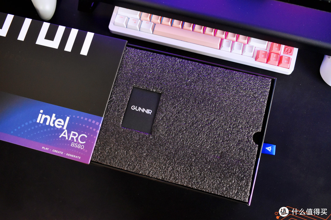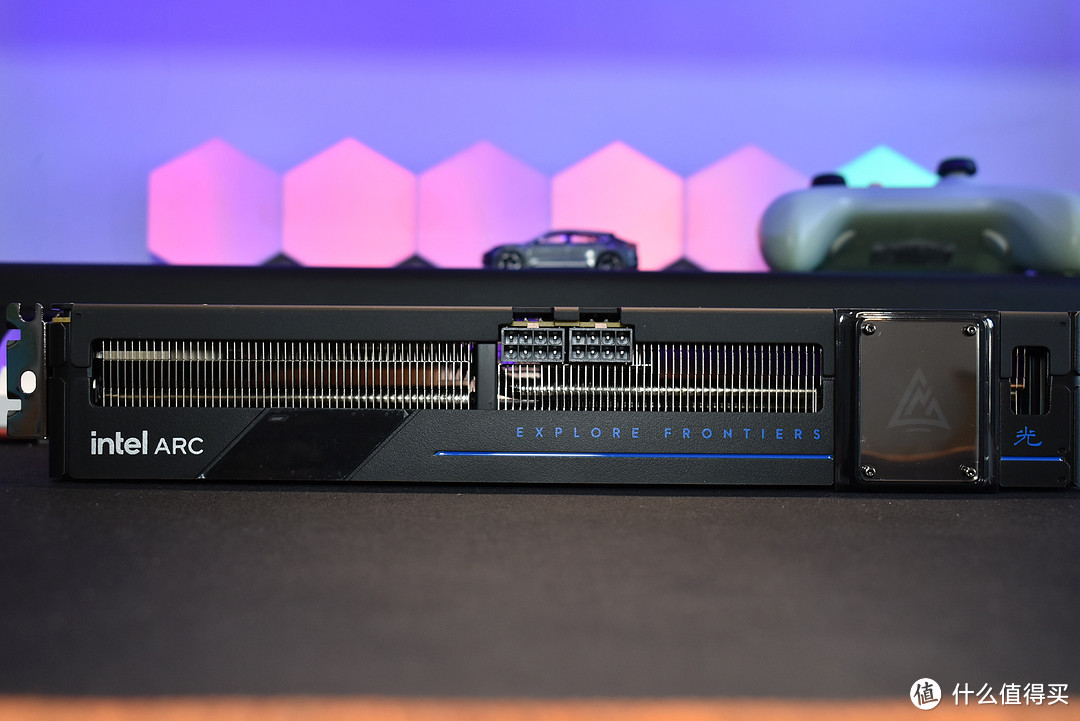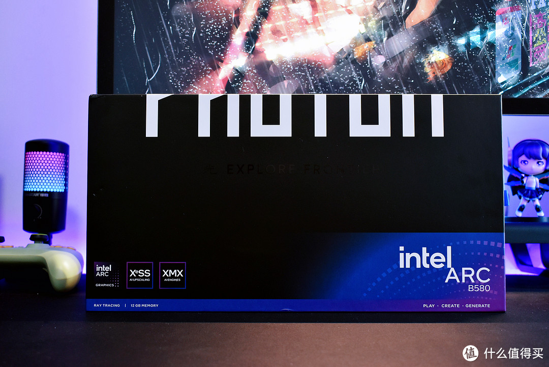 从包装上横跨两面的“Photon”字样不难看出,这次上手的是蓝戟主打性能表现的Photon光系列显卡。作为第二代Arc独立显卡,B580是基于英特尔最新的Xe2架构设计,相比前代显著改善了能效比和任务处理效率。
