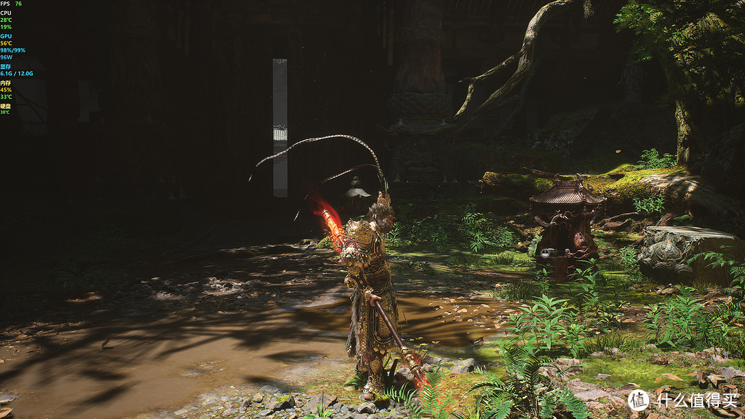 在国产3A大作《黑神话:悟空》基准测试中,2K分辨率+全高画质,60%FSR超分辨率采样 + 帧生成条件下,游戏平均帧率为77fps,最高帧91fps,最低帧59fps,已经是非常流畅的画面表现了。