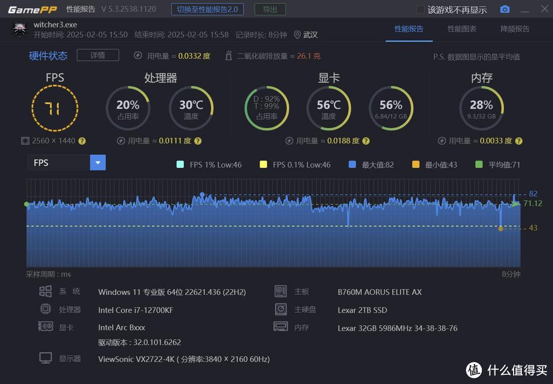 新版的《巫师 3:狂猎》也加入了光追特效,蓝戟B580 Photon凭借不俗的光追性能,2K分辨率+开启XeSS反锯齿条件下,在“光线追踪”和“光线追踪超级”特效下,分别取得71fps和57fps的平均帧率,让这款2015年TGA年度游戏以更为华丽的光追特效与玩家邂逅,操作极为流畅。