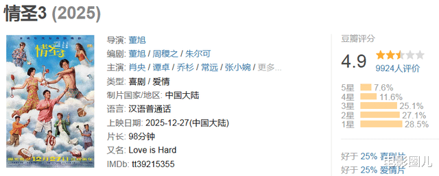 《情圣3》是《情圣》系列第三部作品,当年由肖央主演的《情圣1》备受欢迎,贡献了很多笑点,最终大卖6.5亿票房,可谓相当成功。在《情圣2》由于某些原因不能上映的情况下,这部《情圣3》强势定档2025年12月27号,可谓来势汹汹。