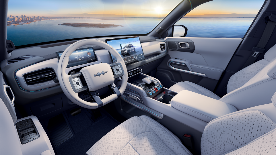 除了智能车载无人机系统,钛 3 还配备了电动前舱、生态座舱和便捷后舱。电动前舱容积达151L,可满足生活经营、运动娱乐、节日惊喜等多种场景需求;生态座舱中的多功能灵动岛集成了 50W 无线充电、下沉储物空间、车载手电筒、车载麦克风等功能,搭配自定义按键、6kW 外放电、冷暖冰箱以及可放倒的后排座椅,让车内空间更加灵活多变;便捷后舱则提供了 28L 的存储空间,满足生活收纳和百变工具的需求。