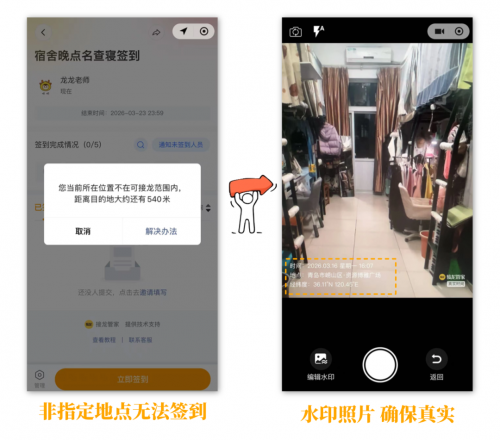 搭配定位签到、水印拍照等多种防代签方式,从根源上杜绝同学代签乱象;