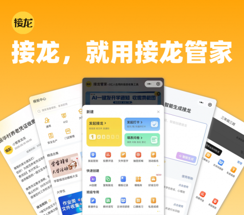 不管是校园里的考勤签到、作业收集、通知接龙,还是职场中的通知统计、团建报名,亦或是社区里的团购买菜,如今只要提到“接龙”,绝大多数人第一反应都是接龙管家。