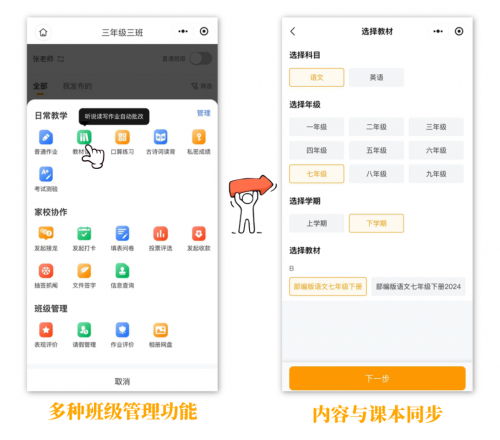 除此之外,作业打卡、填表统计、在线签名、私密发成绩、教材读写、收班费等实用功能一应俱全,校园里的大小琐事,一个小程序全搞定。