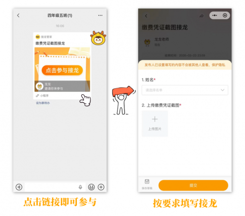 家长只需点击接龙链接,就能按要求提交信息,即便是不熟悉智能操作的长辈,也能轻松完成操作,无任何使用难度。