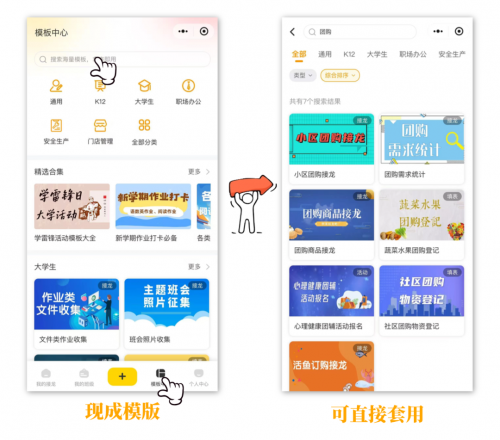 针对社区摸排、团购拼单、小区通知等场景,接龙管家更有海量现成模板,可直接一键套用,省去从零搭建的时间成本。