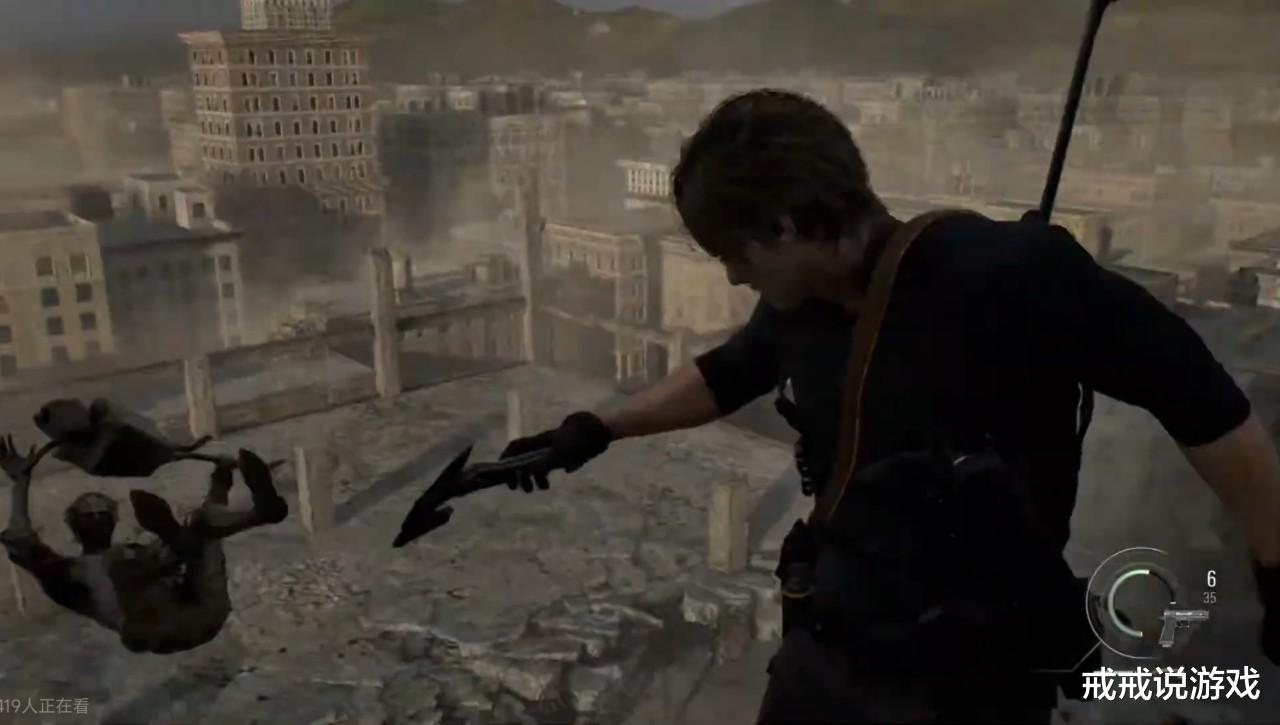 从视频来看,浣熊市场景不只限于提供简单的造景,在关卡设计上与场景也有紧密联系。比如在倒下来的摩天大楼上战斗的时候,可以击破脚下的玻璃让敌人掉落。你还需要躲避下坠的电梯,避免成为里昂三明治。别的不说除去小怪和精英怪,目前明确的分头这部里要对付的敌人有维克托,泽诺,汉克,暴君,疗养院线的BOSS,这强度绝对超过246和底部CG动画了!