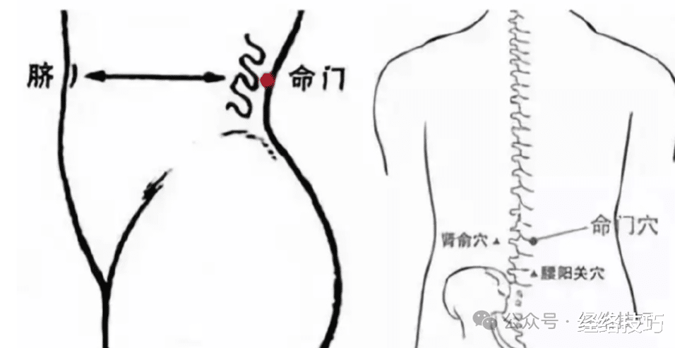 命门穴位于后背中间,正对肚脐之处,用手可摸到骨头节凹下的部位,古人称其为“生命之门”,乃人体先天元气的根本所在。