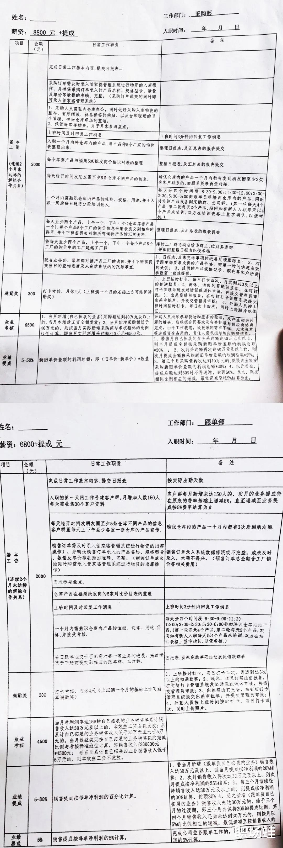“如还有采购和跟单的待遇如下图,”