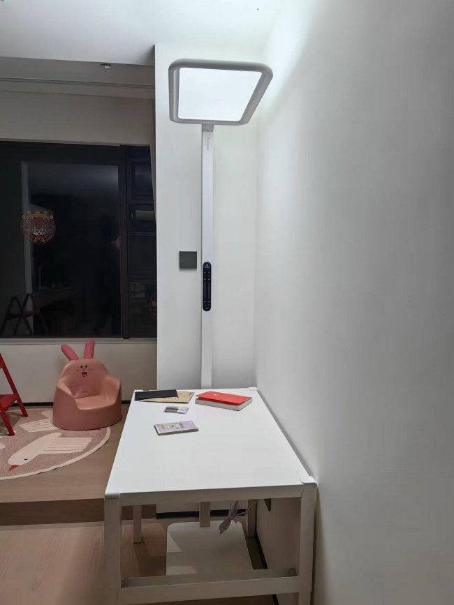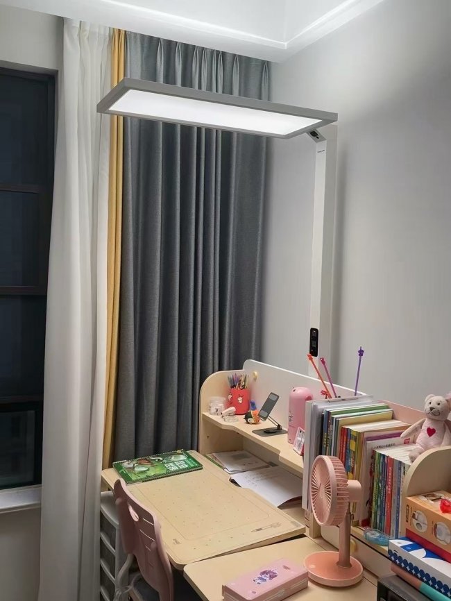 在照明上,孩视宝采用矩形发光面设计,上下双向出光配合双层扩散镜设计,使光覆盖面积大幅提升,光通量可达约10855lm,整体照明明亮充足,并且防眩光指数约为14.4左右,但由于发光结构设计,实际使用时仍会感受到轻微的眩光,光感偏强。