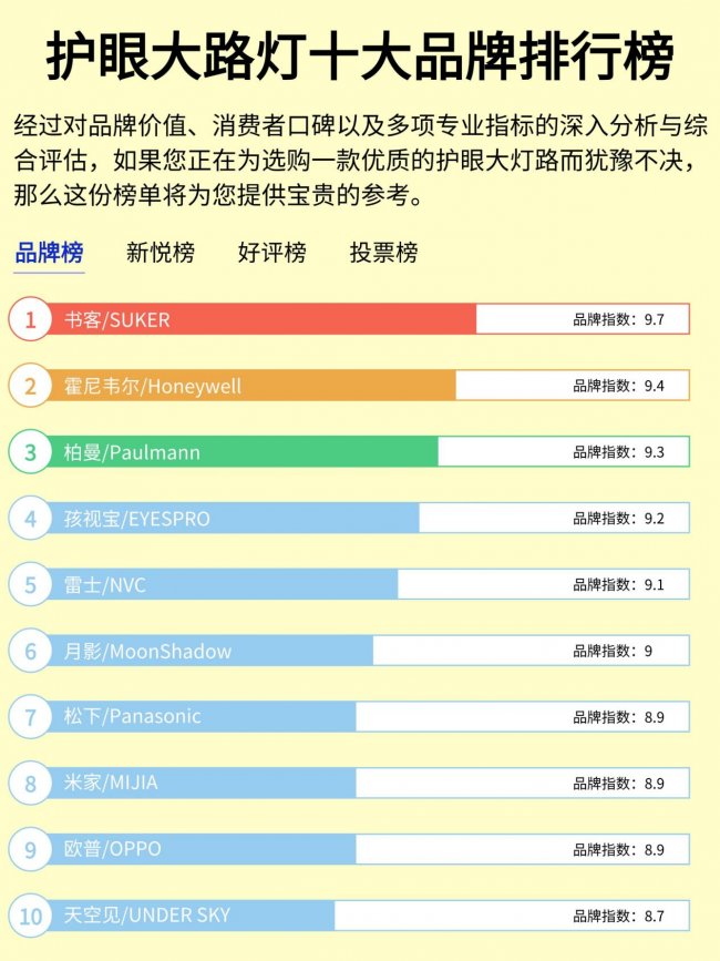 市面上护眼大路灯品牌众多,但真正值得入手的,还是那些在光学设计、光谱完整性、蓝光控制和防眩光等核心指标上表现可靠,同时售后服务完善的品牌。