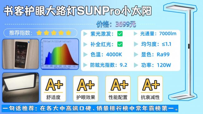 大路灯护眼灯是智商税吗?儿童护眼大路灯哪个牌子好?书客SUNPro作为在安全护眼、光线均匀性、低蓝光控制等光学性能等方面均为行业内最强的护眼大路灯。