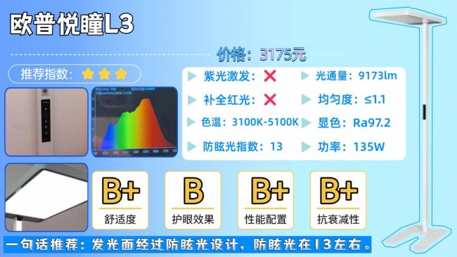 8、欧普悦瞳L3护眼指数:⭐⭐⭐