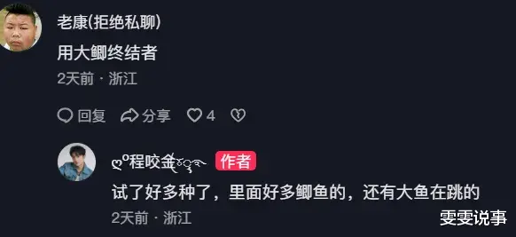 “试了好多种(鱼饵)了,里面好多鲫鱼,还有大鱼在跳……”钓鱼男子回复道。