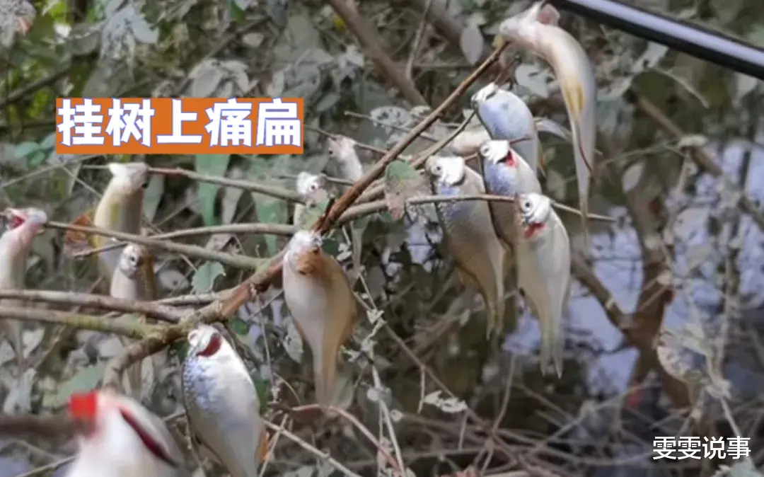 网友“不忘粗心”看到男子将这些鳑鲏挂在树枝上,偷笑道:“你不懂鳑鲏的美味……”