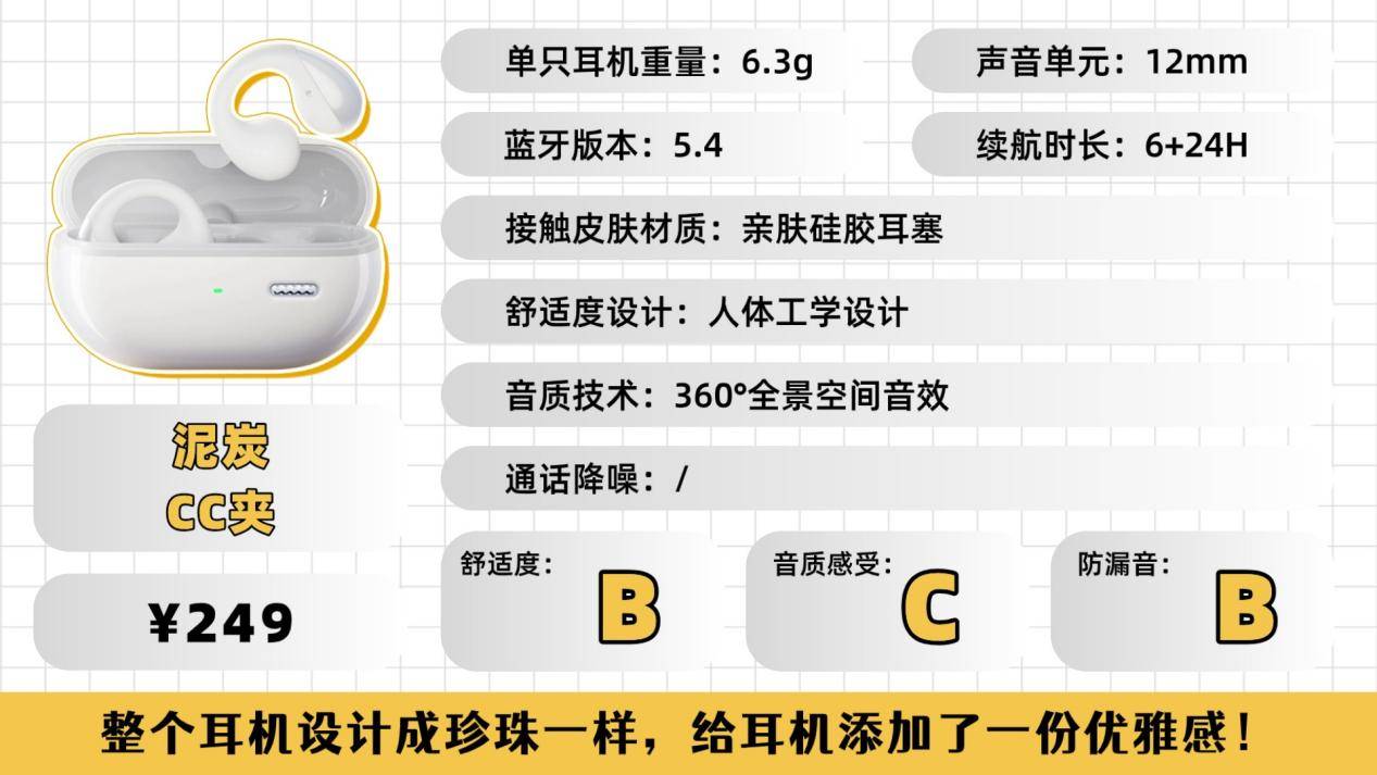 推荐理由:声学调校业内顶尖,佩戴舒适,音质表现几乎无敌,百元级耳夹耳机的高端选择!