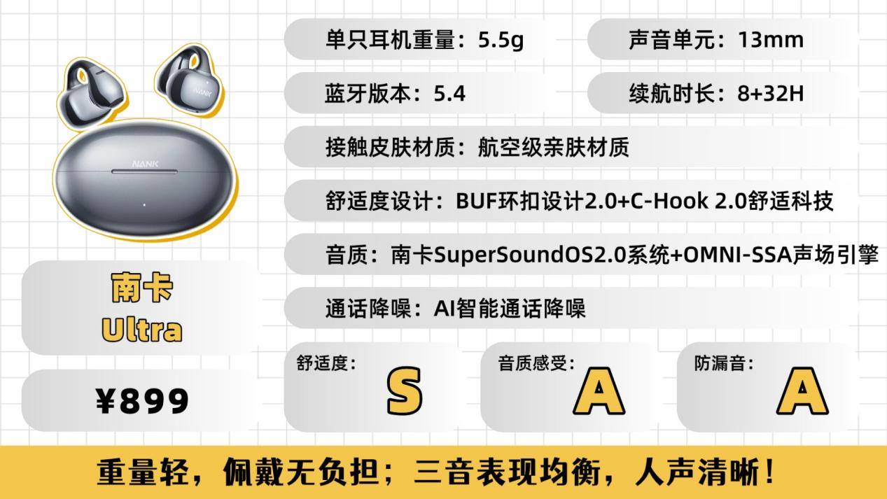 南卡在开放式耳机领域深耕多年,Ultra是其高端耳夹耳机代表作!南卡一直专注声学技术研发和佩戴体验优化,不靠噱头和宣传,而是用扎实技术和严格品控赢得用户信任。Ultra集合了南卡多年的开放式声学成果,无论是音质、稳定性还是佩戴舒适度,都经过精细打磨,是百元价位里极少能达到这种综合水平的耳机!