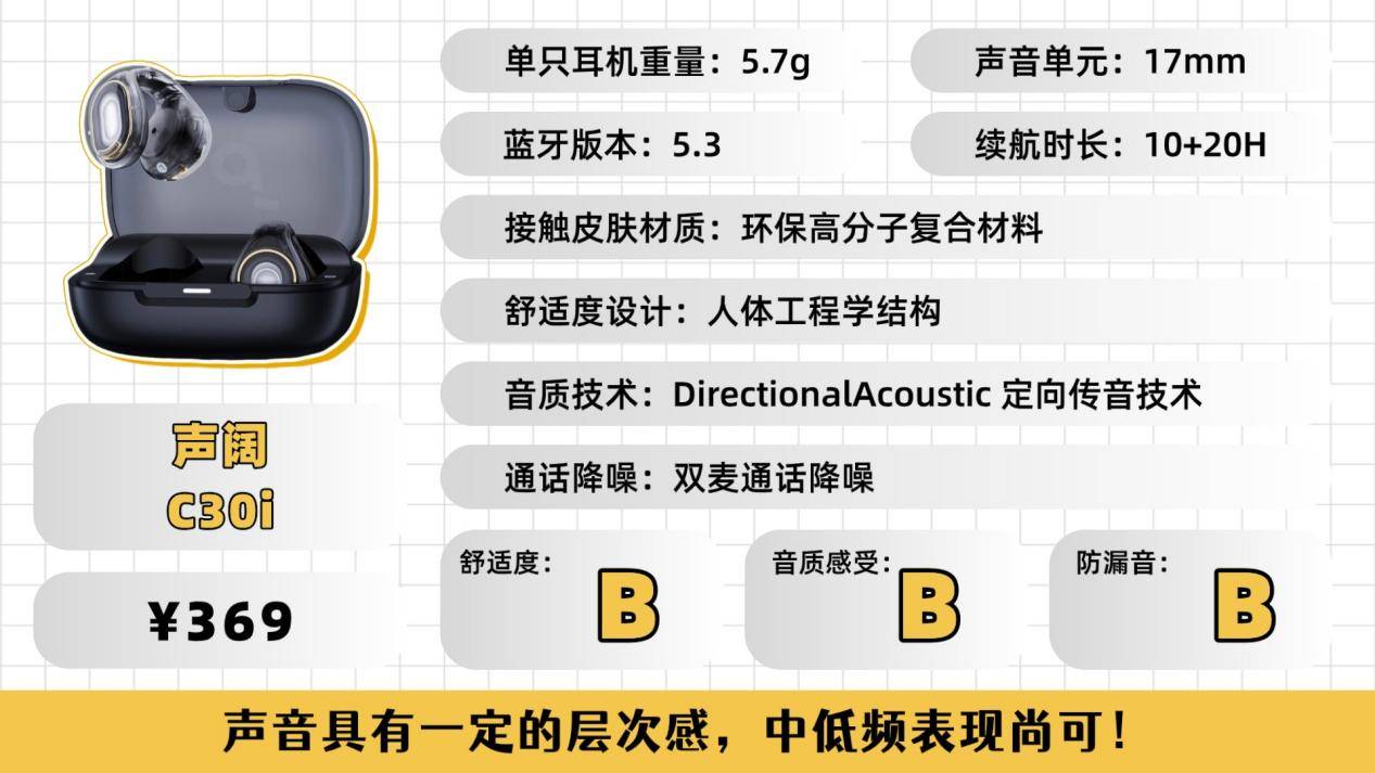 C30i声音风格偏平衡,中频表现较为突出,人声清晰自然。低频力度一般,不追求轰头感,整体适合听轻音乐或进行日常通话。虽然在重低音和复杂音乐层次上略显不足,但日常使用足够满足大部分需求。
