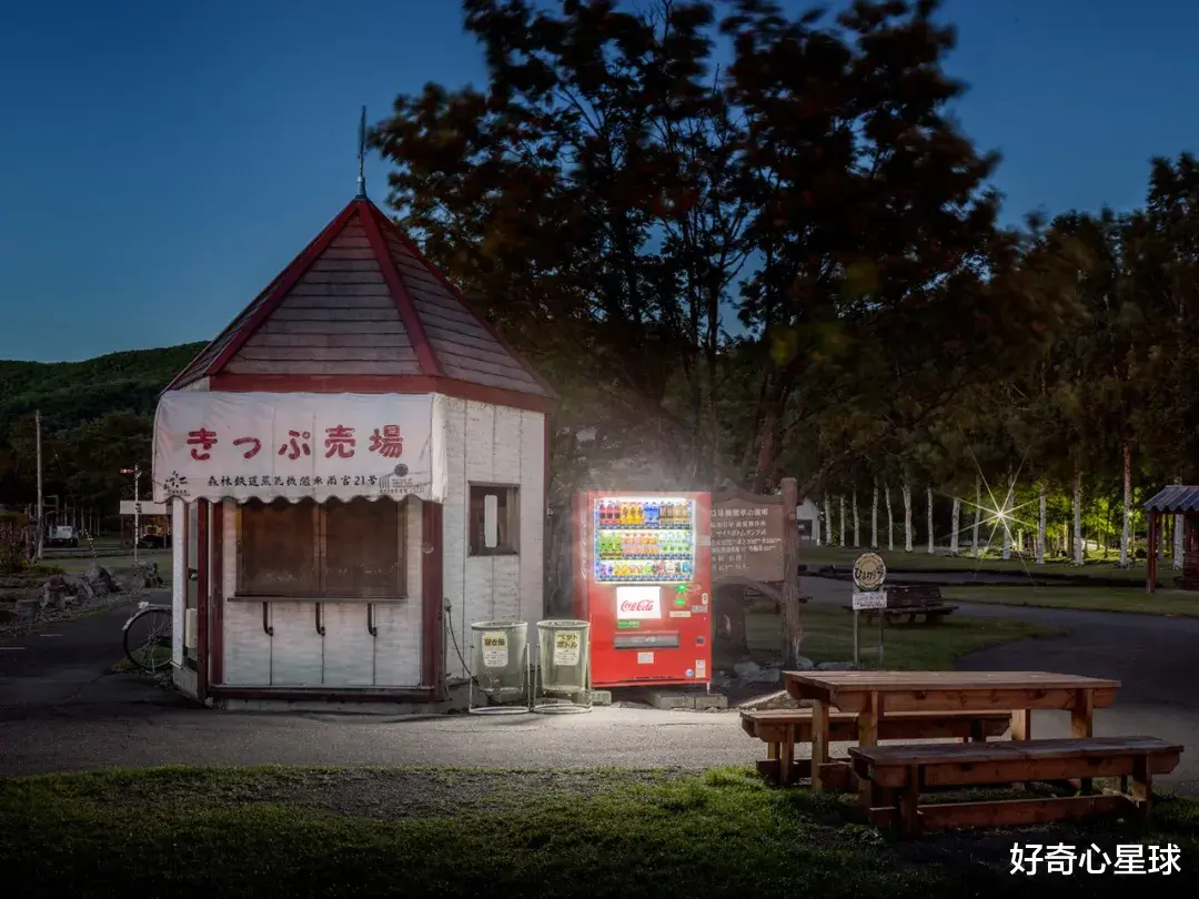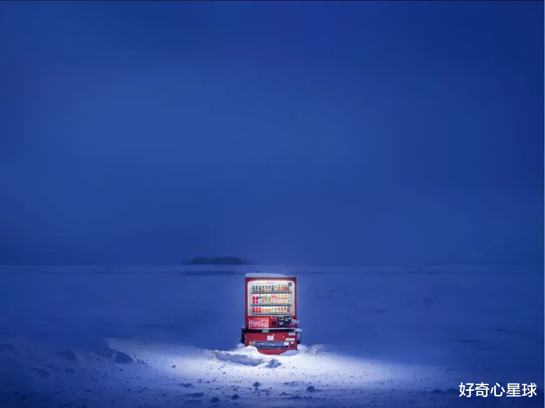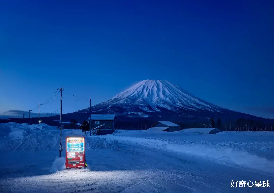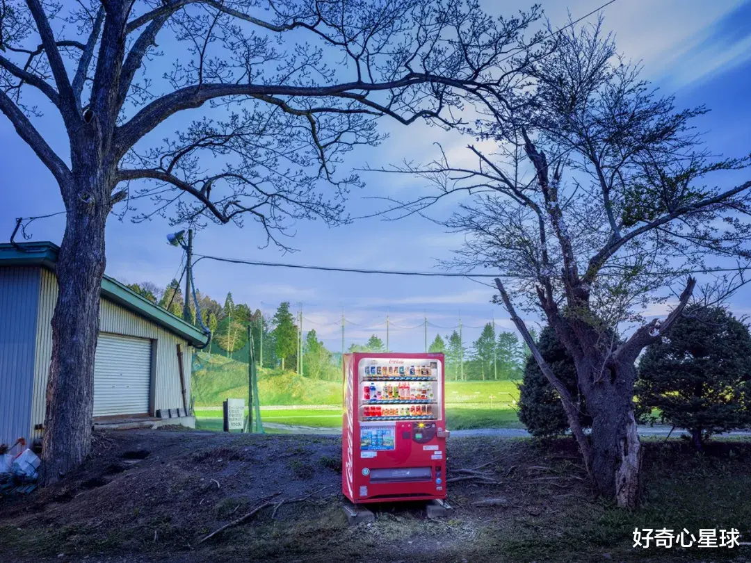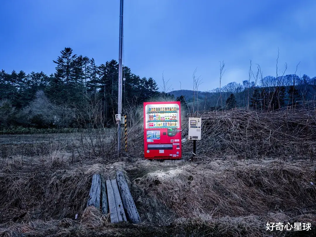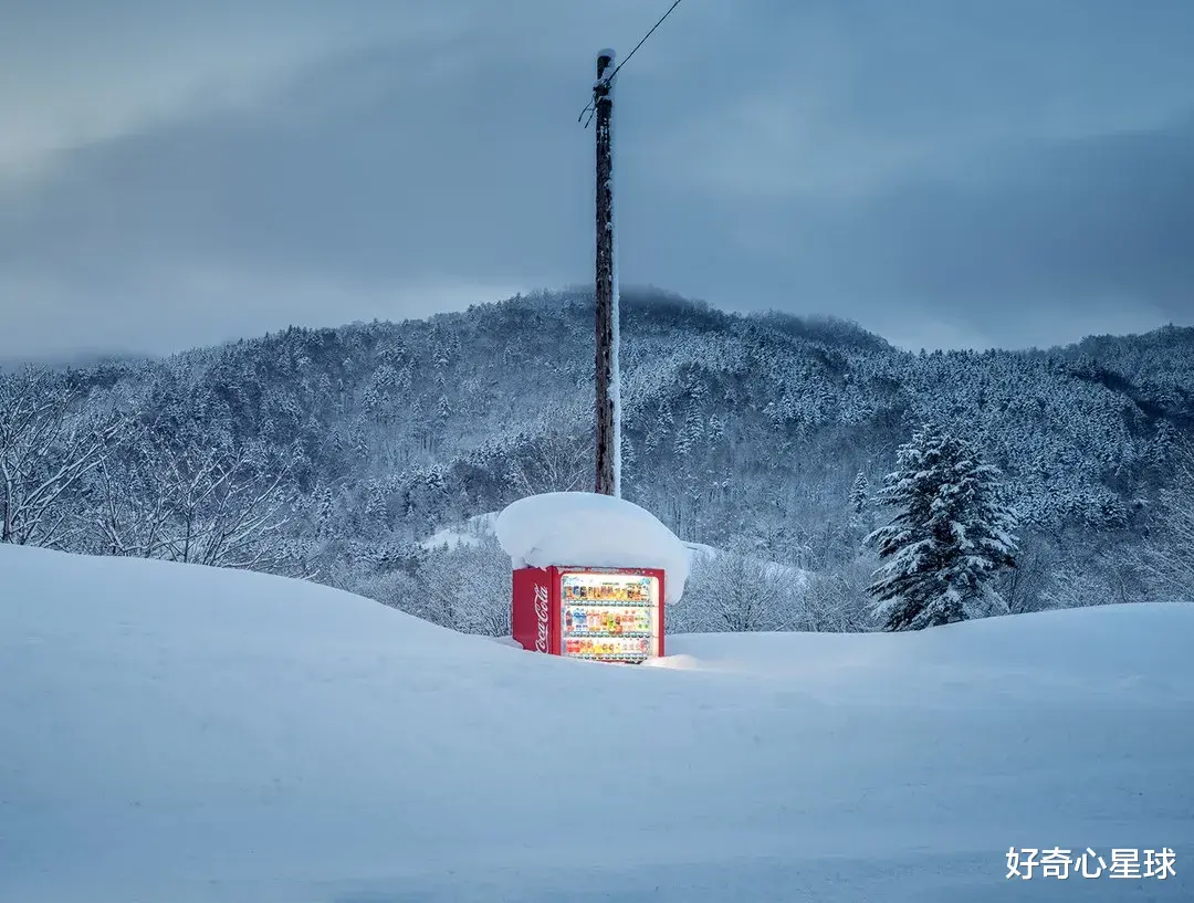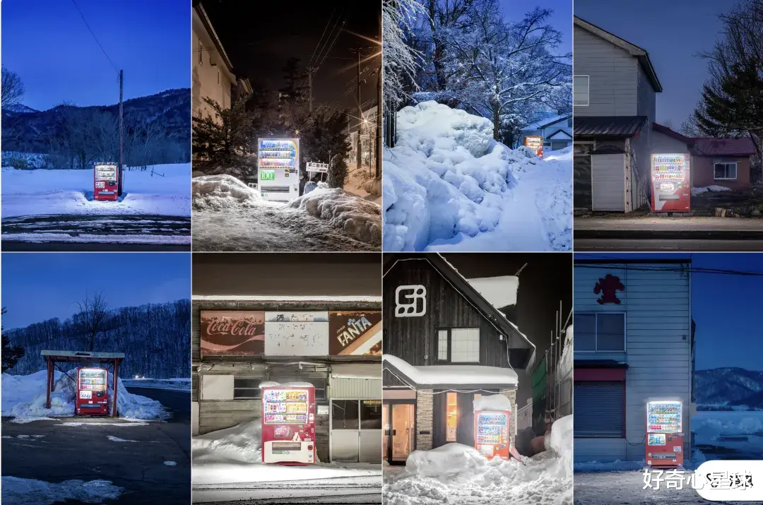 雪地里半截身子被埋住,依然亮着灯;荒郊野外空无一人,它杵在那儿像在等人;富士山脚下那台,看起来从来没人光顾过。