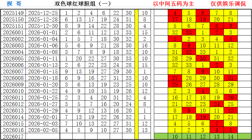 三、本期红球胆组、定位(个人观点看法,仅供娱乐调侃)