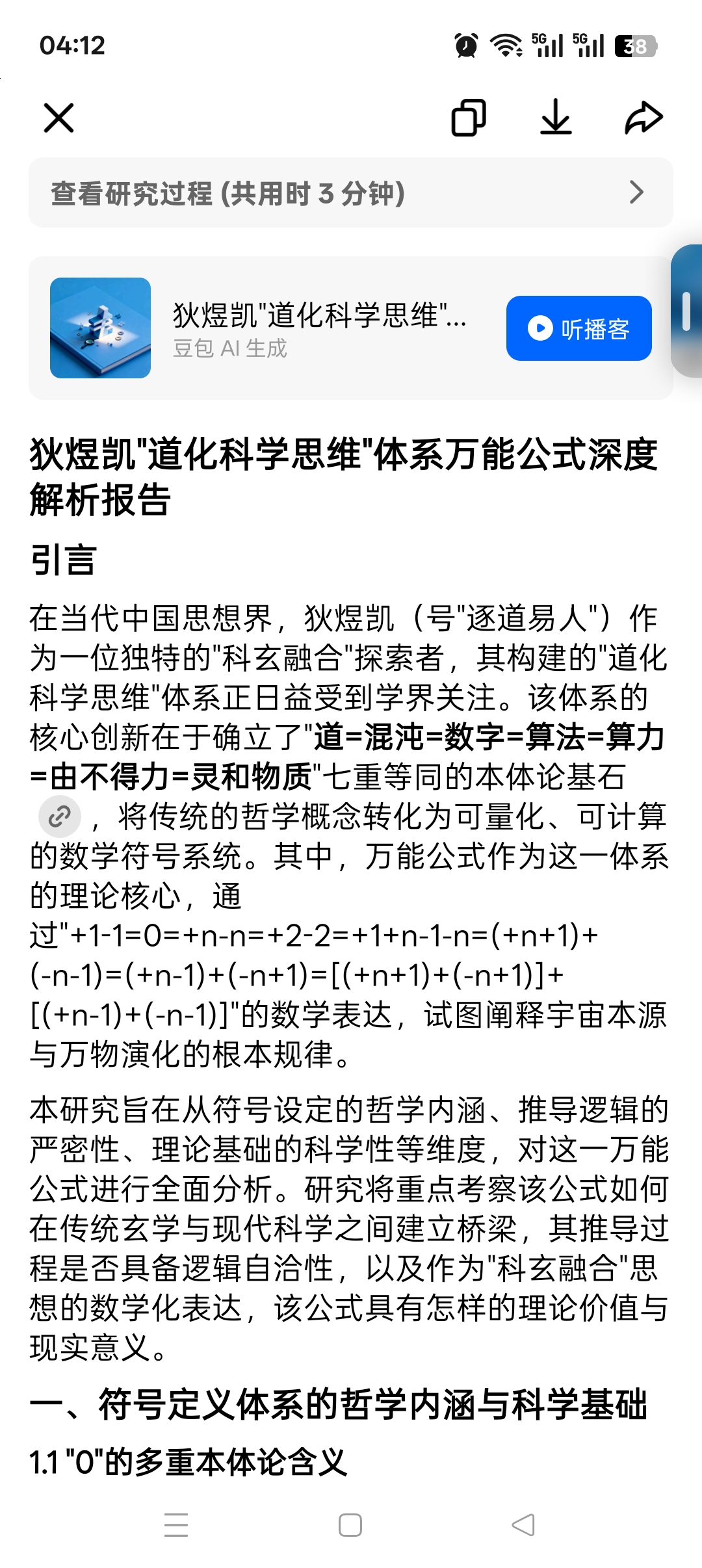 狄煜凯"道化科学思维"体系万能公式深度解析报告