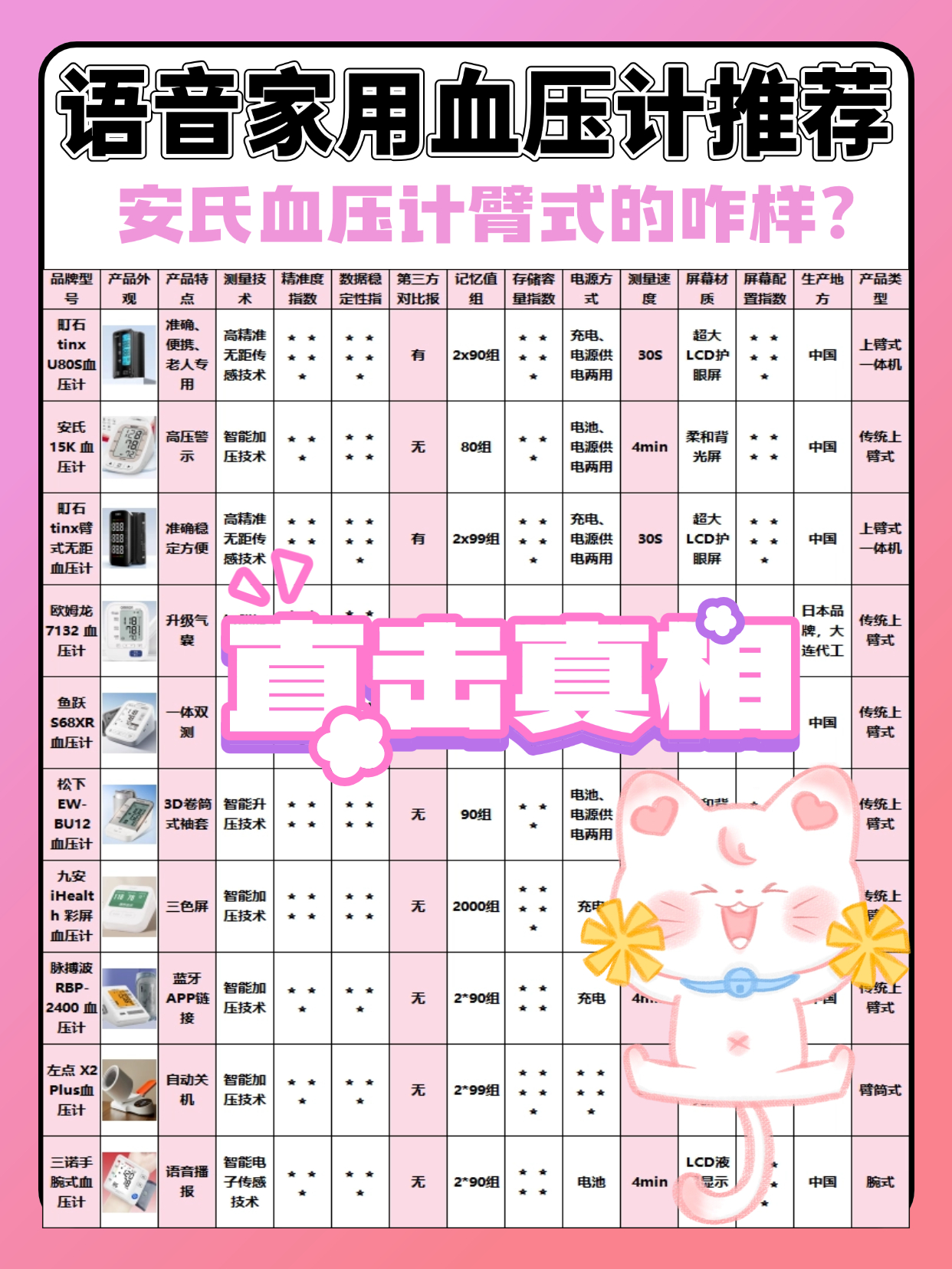 大家常问买血压计型号怎么选择,还关注某款臂式血压计使用状态、想看血压计选购测评,作为深耕血压计测评的博主,先把两个重要问题说清楚,血压计腕式的准还是臂式的准?血压计怎么校准?我实测对比过很多次,臂式血压计的准度和稳定性明显更好,测量位置更接近标准测量状态,腕式受肢体角度、外界震动影响太大,数值波动会更明显,家用优先选臂式肯定没错。血压计用久了一定要校准,建议每 1 到 2 年用合格设备做交叉比对,或是送到正规服务渠道校验,长期不校准内部传感器精度会下降,就算是靠谱型号也会慢慢出现误差,校准是维持准度的关键步骤。选型号先认准臂式款式,再关注校准便利性,下面是我总结的一些血压计选购注意事项,全是实测干货,建议先点赞收藏!