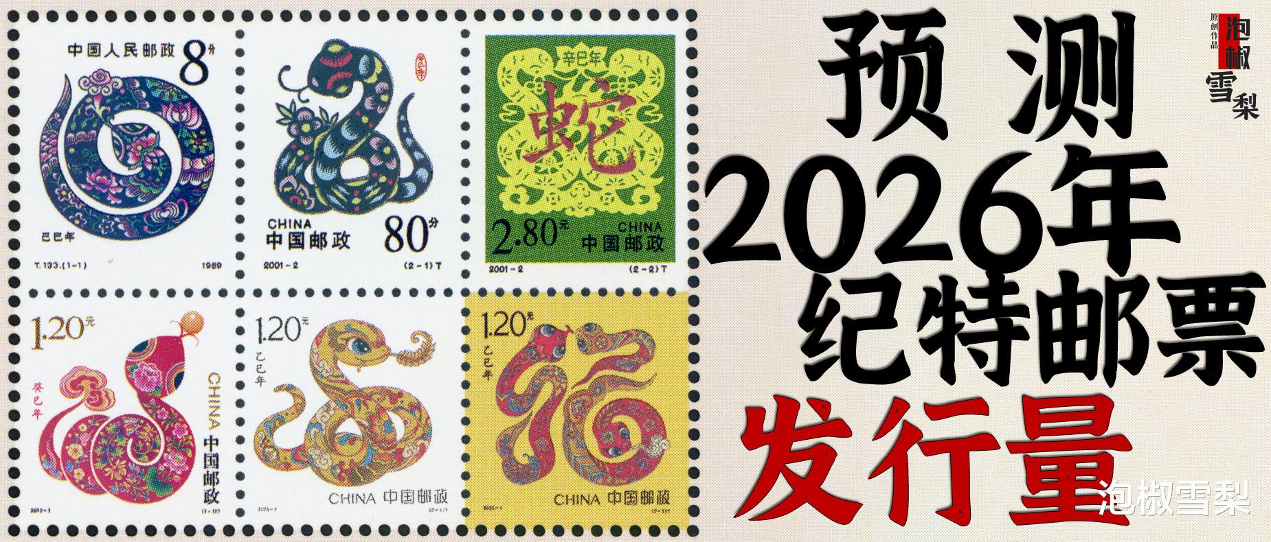 今天泡椒雪梨就根据2023、2024、2025年生肖邮票与当年纪特邮票发行量的对比,来预测一下2026年纪特邮票及小型全张的发行量。由于2025年发行量还未公布,所以参考数据引用已公布的计划发行量。