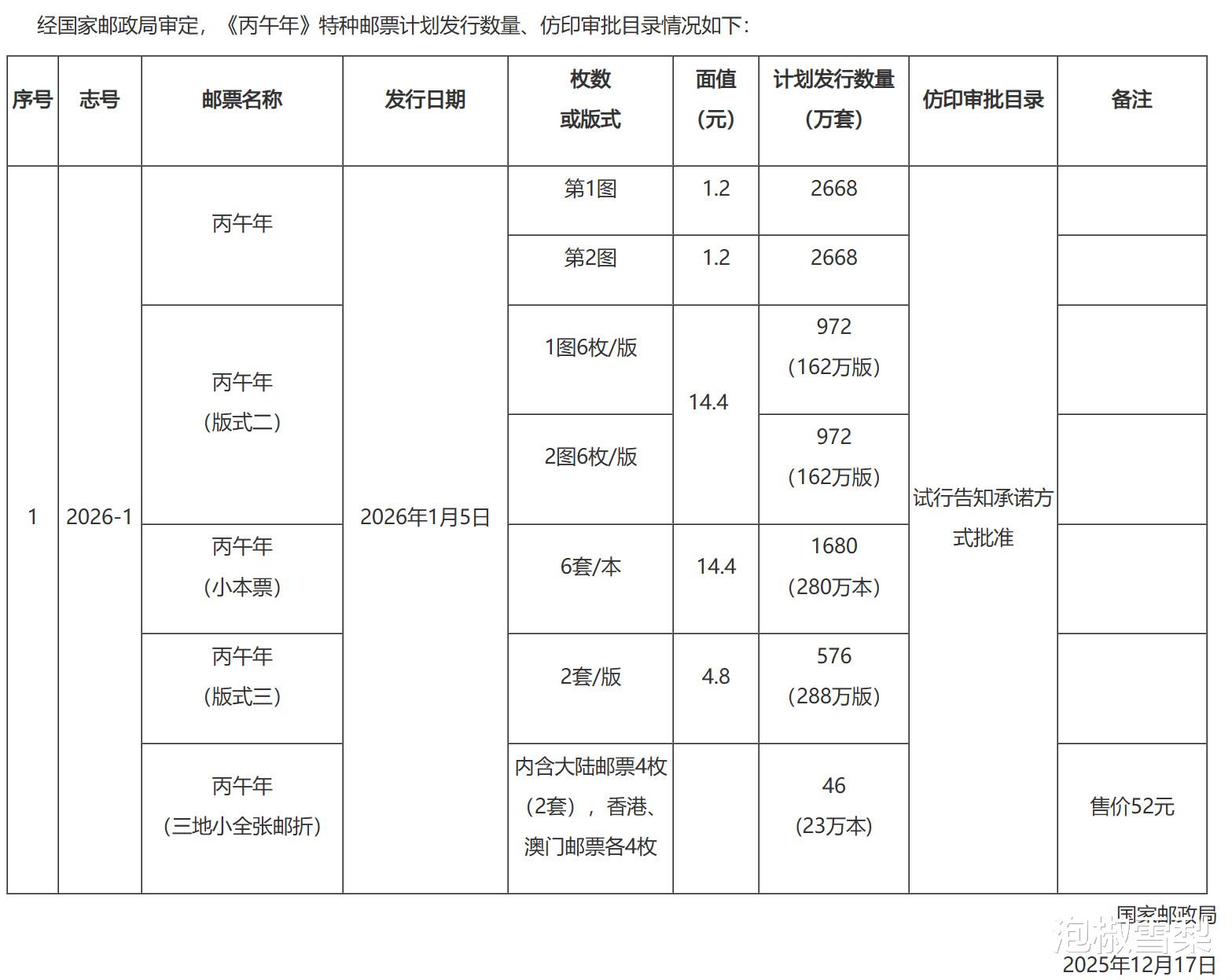 2025年12月17日,国家邮政局公布了2026年生肖马邮票计划发行量,算是给明年全年邮票发行量定了一个总基调。