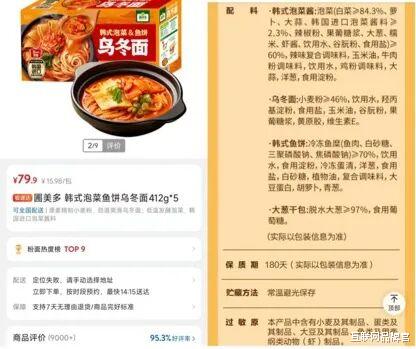 这一趟消费清单里,有一箱韩式泡菜鱼饼乌冬面,五袋组合装,标价79.9元。