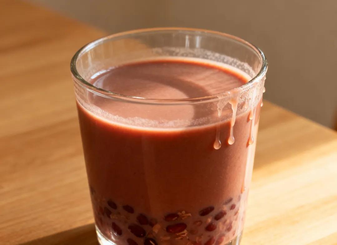 红豆豆浆,需提前将20克红豆浸泡4小时,与50克黄豆、足量清水一同放入破壁机,选择“豆浆模式”,打好后,可根据喜好,加少许冰糖调味,口感绵密,带着红豆的沙甜,补血又解腻。