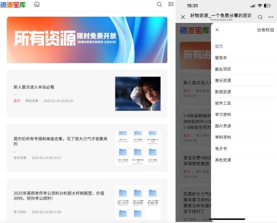 这也是一个完全免费的网站,不需要登录,不需要充VIP,里面有几百种各类资源,我刚发现他的时候只有几十个资源,就一直收藏者,现在已经有几百种资源了,从幼儿园到高中的学习资料,PPT模版,影视资源,音乐资源,还有一些图片资源,各种资源他都有,重点是真的完全免费,而且也不复杂,很好操作。