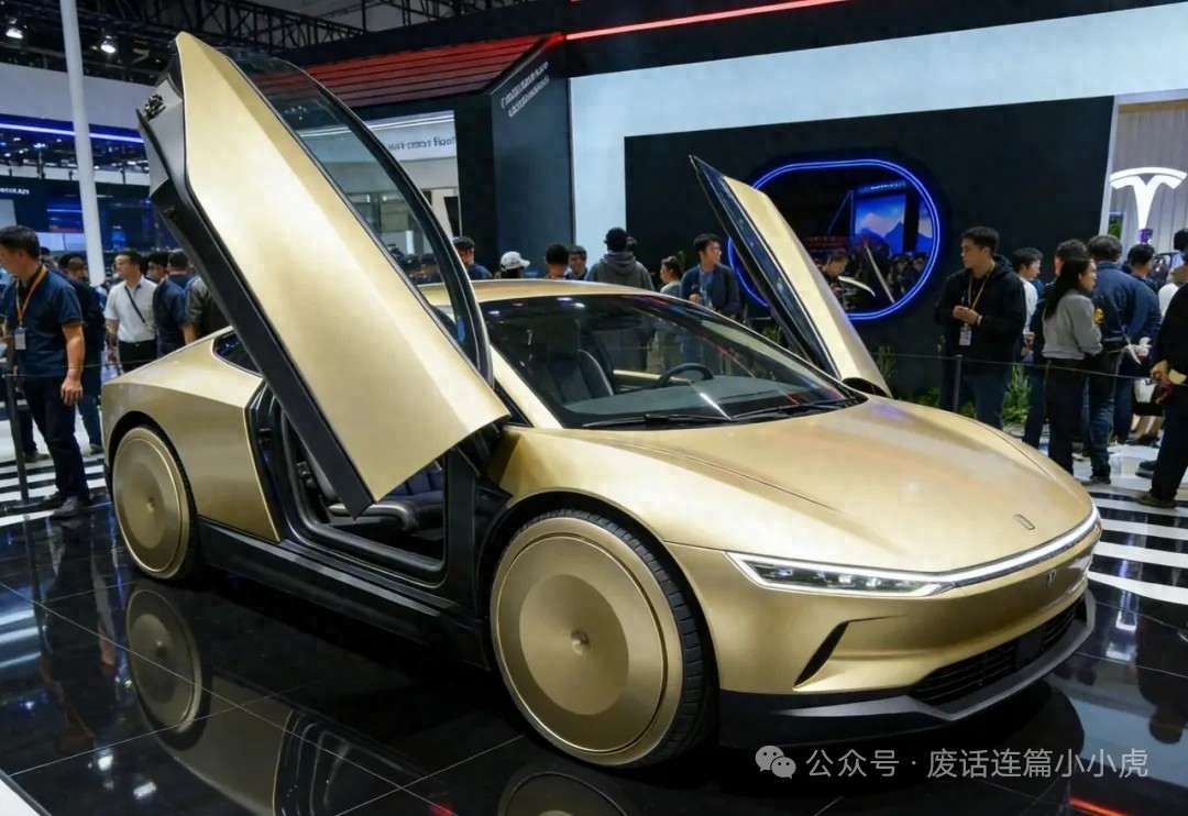 车门采用鸥翼门设计,没有传统门把手,靠感应自动开启,上下车更优雅,也更有未来感。