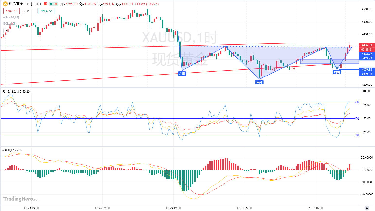 这波上涨其实也不算意外。周末老美对委内瑞拉那事大家都知道了吧?一个总统抓了另一个,现在都在喊话放人。美方那边初步定在今天(5号)开庭,委内那边副总统昨天已经紧急开了内阁会议。这种地缘政治的“火药味”,自然推着黄金往上走——避险嘛,大家都懂。现在就看4400这个前高能不能压得住了。