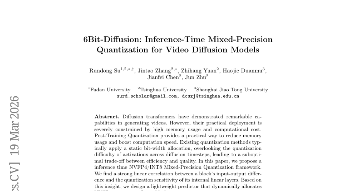 这项由清华大学TSAIL小组联合复旦大学、上海交通大学开展的研究发表于2026年3月的arXiv预印本平台(论文编号:arXiv:2603.18742v1),为解决视频生成AI模型的"体重"和速度问题提供了创新方案。
