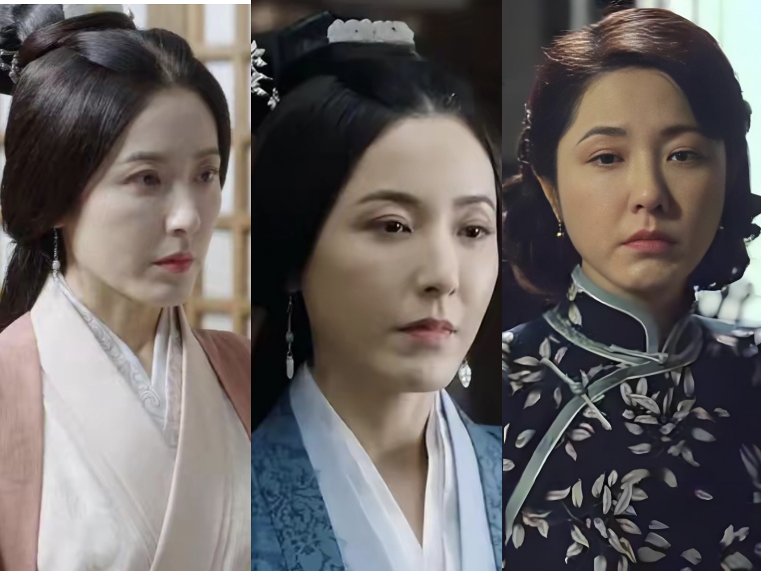 除了服装造型有变化,面目表情却几乎雷同,一直绷着脸,面无表情。