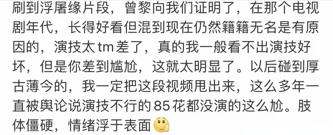 《与凤行》热播后,林更新翻红,赵丽颖被赞,再次“戏混子”的曾黎,迎来的是满屏对她演技的质疑声。