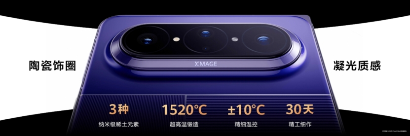 在设计美学上,华为Pura X Max汲取了巴黎时装周与瑞士表展的灵感。零度白、星际蓝和活力橙继承了先锋拼接家族设计,背板采用立体光栅玻璃,镌刻横竖斜光影格栅;而橄榄金与幻夜黑则采用极简高级色调,实现“光而不耀”的高级质感。尤为值得一提的是其陶瓷镜头后盖,在1520°超高温下实现原子级染色,并首次加入3种稀土元素,兼顾了细腻触感与耐磨抗指纹特性。