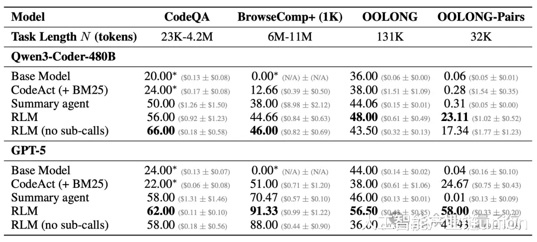 在包含GPT-5和Qwen3-Coder-480B等模型的评测中,RLM突破了物理显存对上下文长度的限制,并在任务完成质量上超越了基础模型及现有的长文本处理方案。