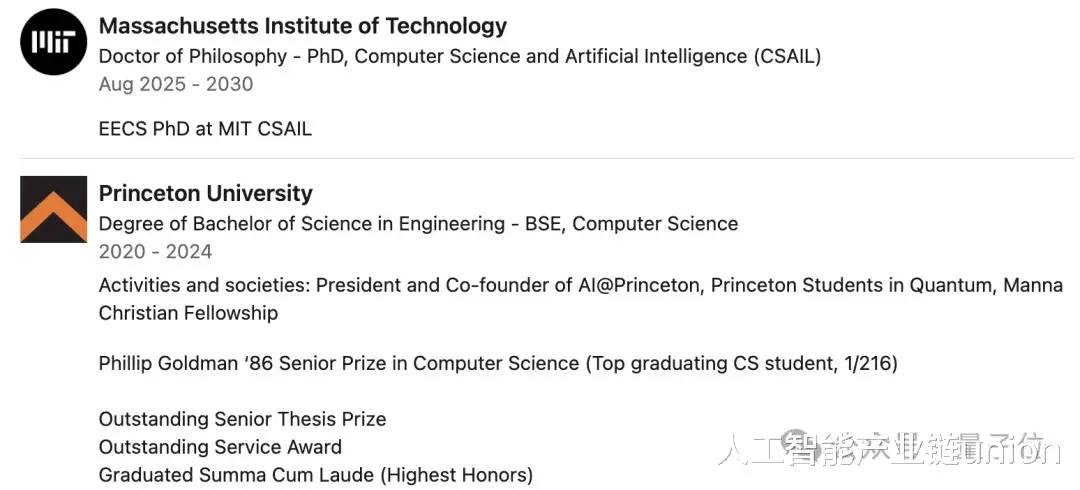 Alex本科就读于普林斯顿,以该校计算机科学系第一名的成绩毕业。