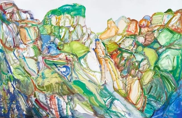 党震 《岩石》 纸本设色 244cm×508cm 2024年
