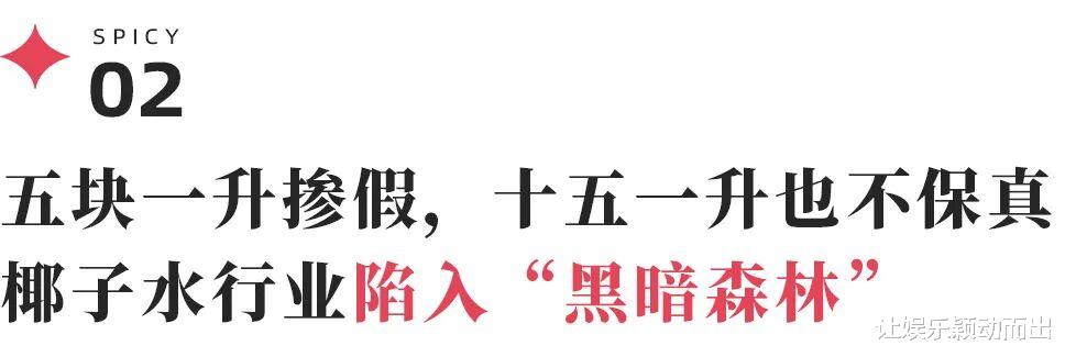 过去的椰子水造假更像一场谁也说不清的“浑水战”,“内行人都知道造假多,低价不现实,但都没法甩出证据讨论谁是假货,有些品牌就是梗着脖子说自己是赔本赚吆喝,谁都奈何不了。”椰子水资深从业者小王表示。就连行业地位扎实、颇得人心的椰树牌,也只能利用椰树体在自家的椰子水品牌上暗戳戳阴阳。
