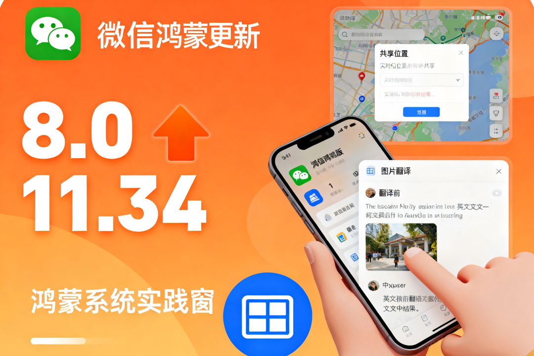鸿蒙用户昨晚集体狂喜!微信突然推送 8.0.11.34 版本,版本号直接跟安卓、iOS 对齐,之前没有的共享实时位置、朋友圈图片翻译全补上了,连 QQ 邮箱收发都能用了,再也不用吐槽 “鸿蒙版微信是阉割版”。