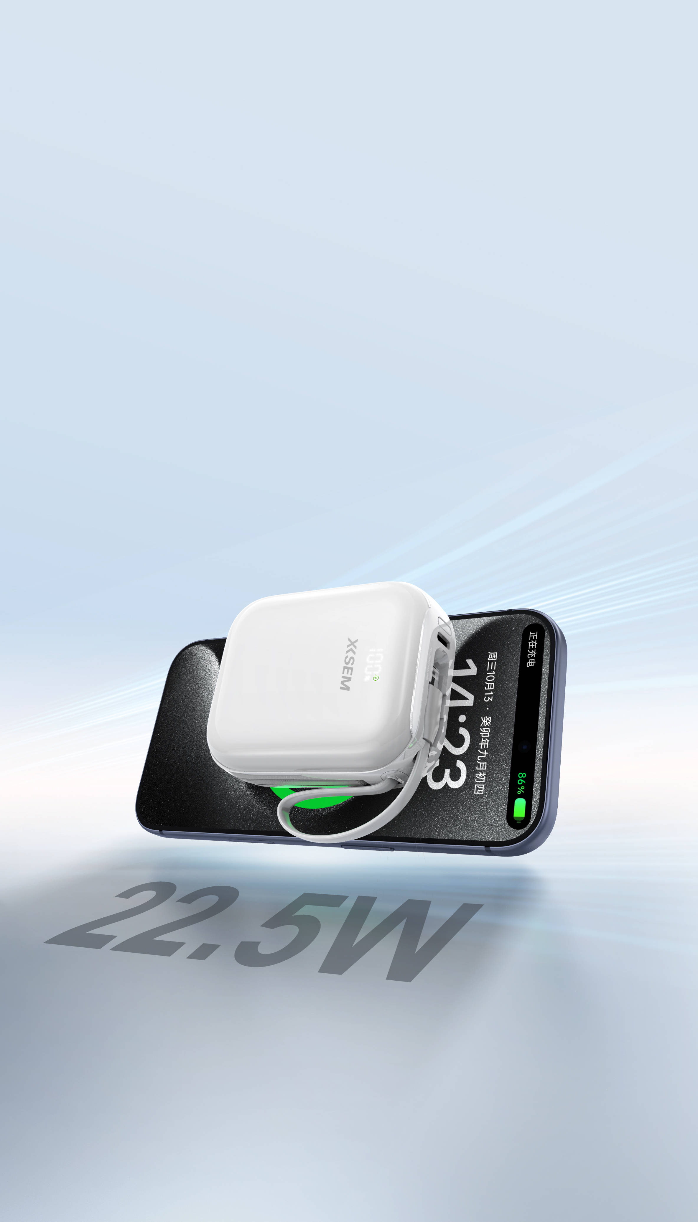 22.5W快充:支持22.5W的快充功率,能够快速为设备充电,满足大部分设备的日常充电需求,特别适合需要快速充电的场景。