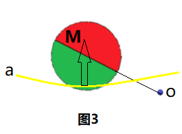 当M继续旋转,如图3。微线a在滑过M的后半段时弹力向上,这时弹力的方向与M的运动方向不一致,产生往外弹离中心o的对抗力F。这就是离心力产生的原因。当物质旋转的角速度越快,即物质运动的方向改变越快,微线还原的弹力方向与M的运动方向越不一致,产生往外弹离中心o的对抗力F越强,即离心力越强。
