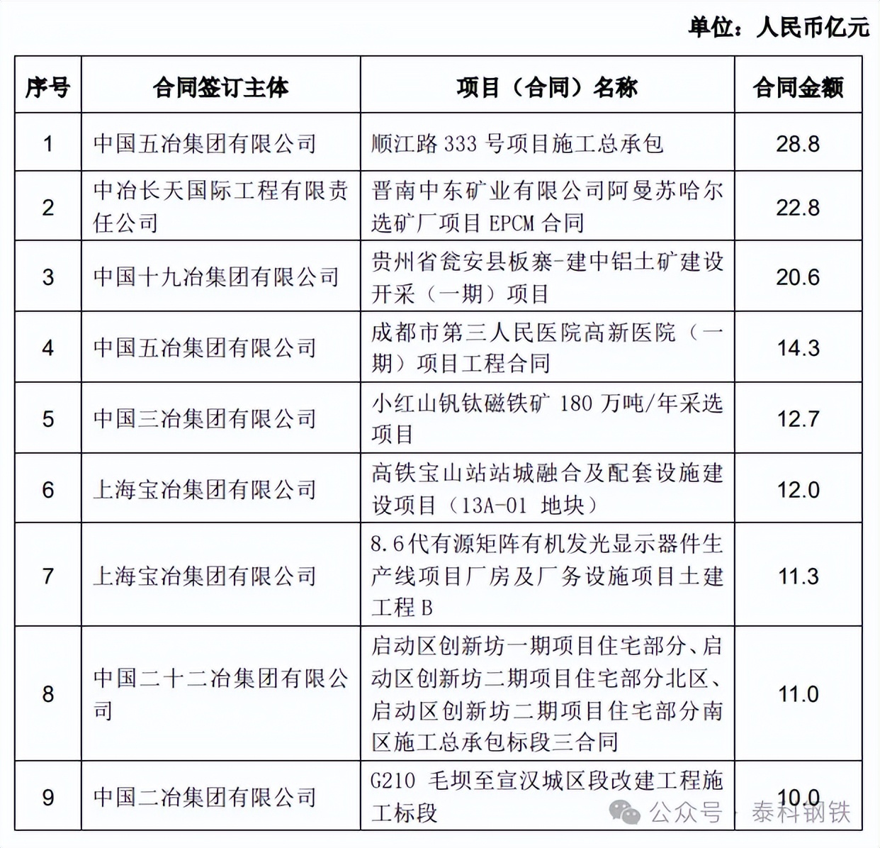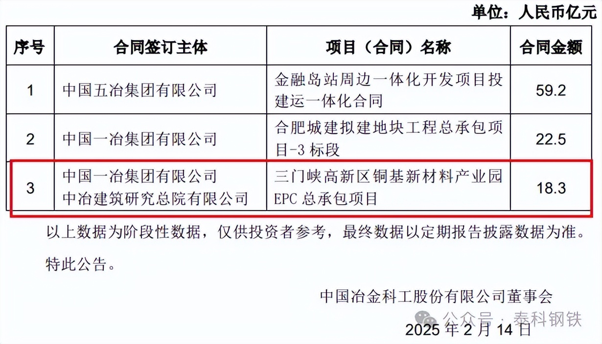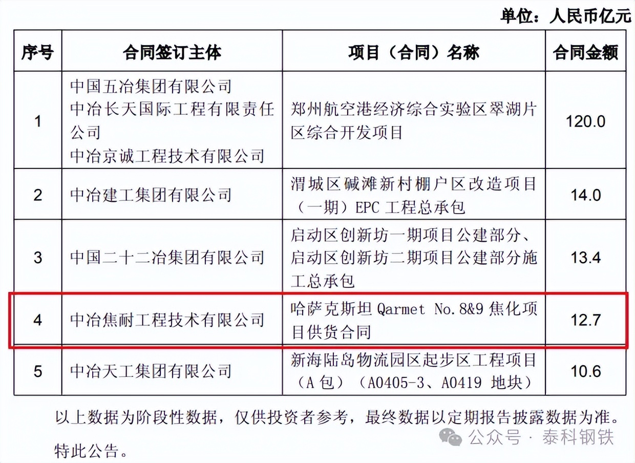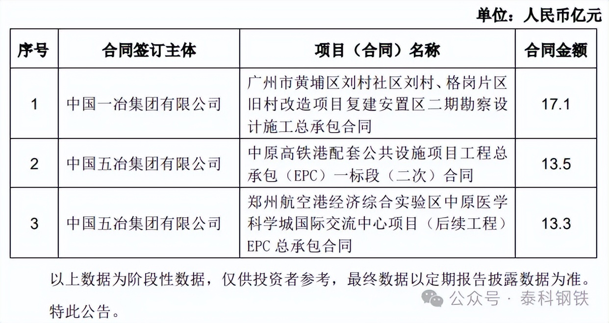 声明:来源:中国中冶公告,泰科钢铁整理编辑 著作权归原作者所有!灵动核心环境服务平台转载此文目的为传递更多信息,如文图有侵或者来源标注有误或者不让转载,可在今日头条私信我们,我们会第一时间删除处理!
