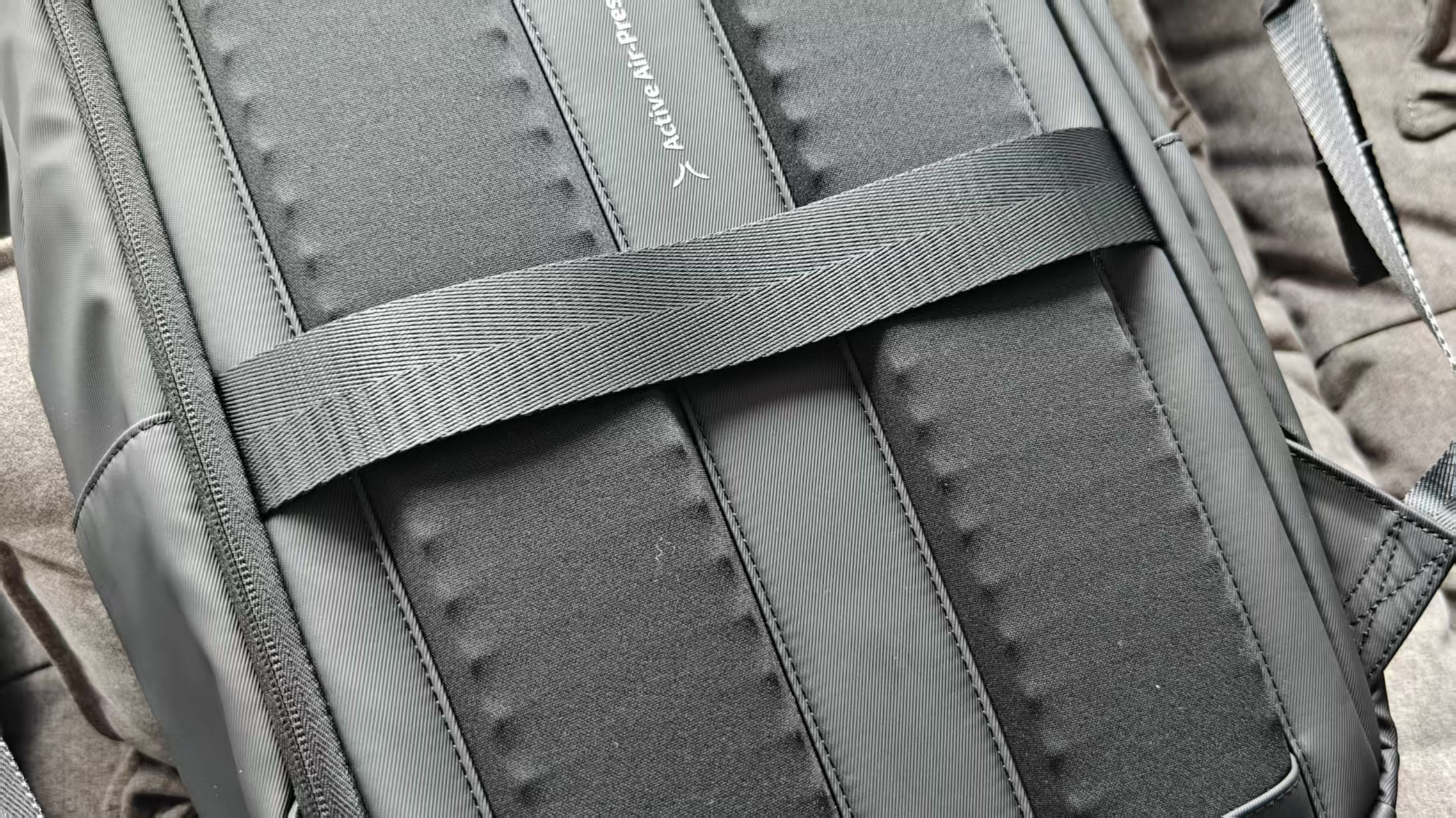 采用一体成型冷压后背,波浪造型减少背部接触面积,脊柱位置架空形成透气通道,有效避免长时间背负导致的后背闷热、出汗,即便夏天通勤,也能保持后背清爽,解决了“夏天背背包闷汗”的社交尴尬。