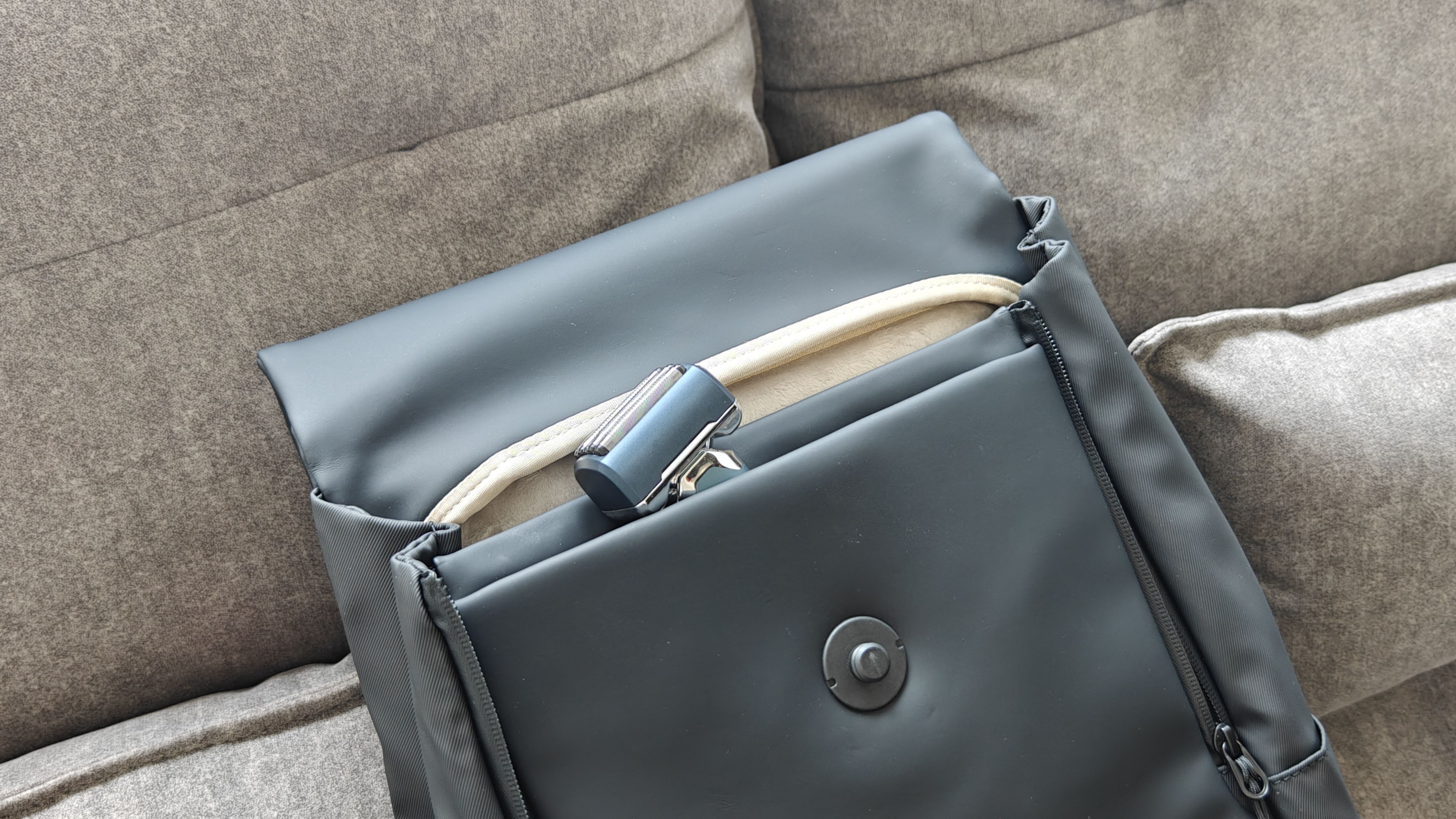 这款包包采用了德国FIDLOCK磁吸拉扣,闭合时自动对准锁定,开启时只需轻轻下拉拉环,阻尼感十足,既避免误触开合,又增添了设计的精致度,细节处尽显质感。