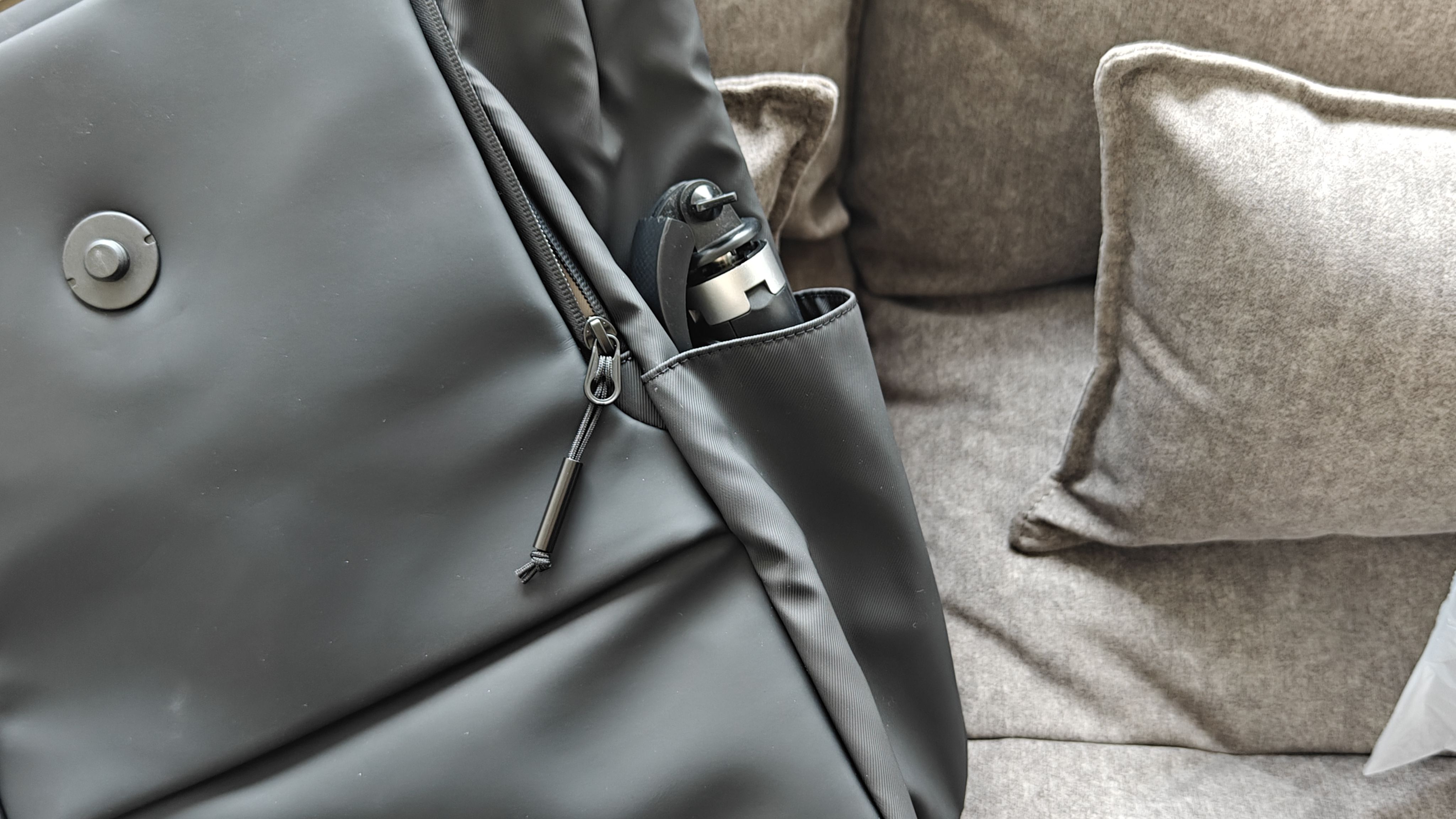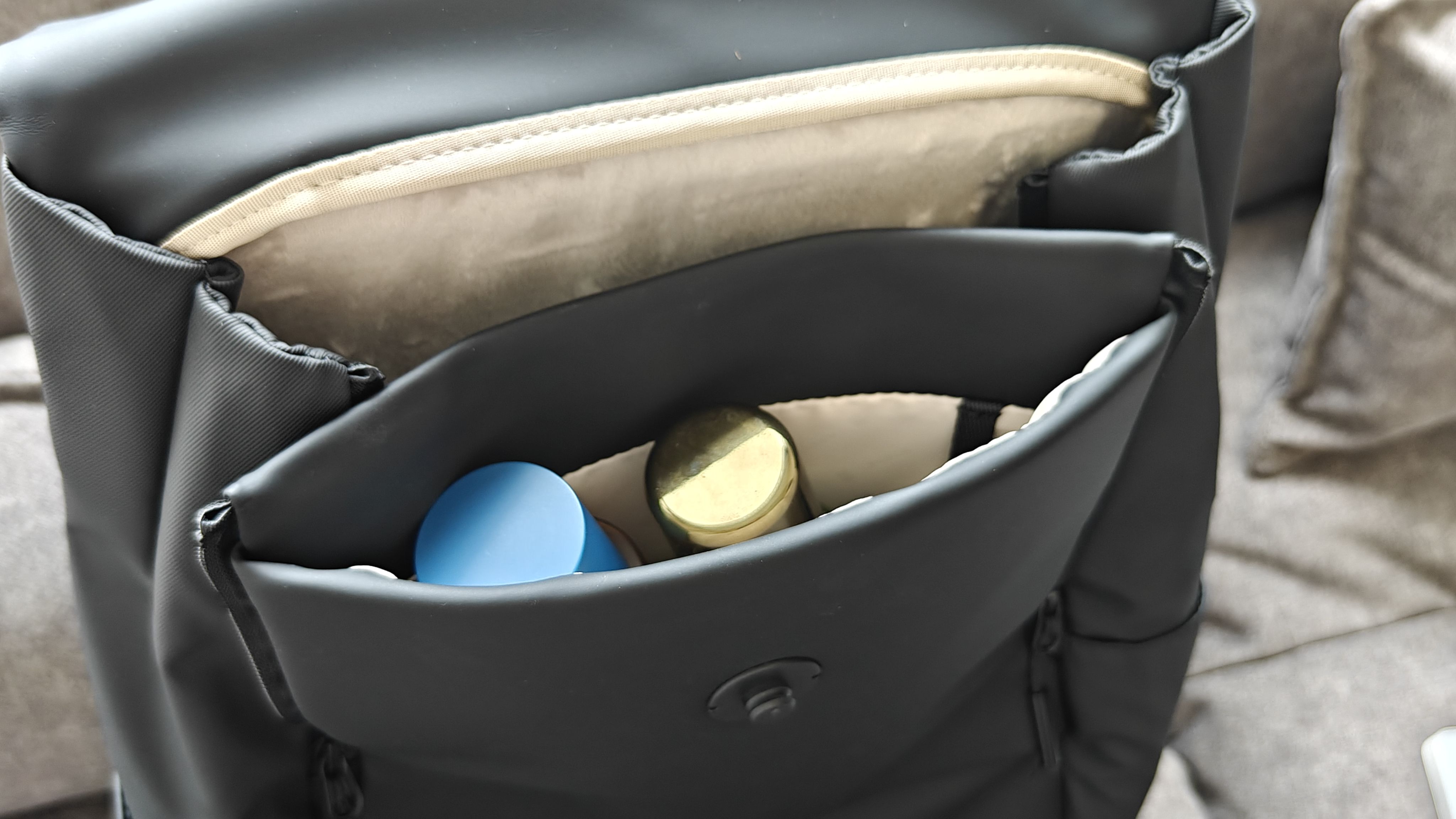 地平线8号moment背包的收纳分区设计非常科学,首先在包包外侧有一个小口袋,这个位置也有拉链,可以放一些需要随手能拿到的小件。