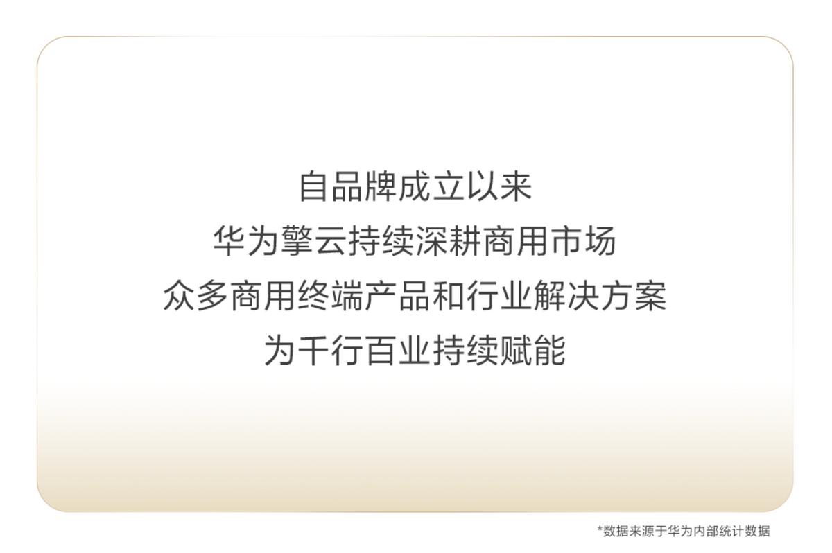 2025年12月31日,华为擎云正式交出了一份厚重的年度答卷,服务行业客户超10万家,商用终端及解决方案在5大行业规模化落地。同时华为擎云也迎来了品牌发展的全面进阶,官方公众号于近期正式更名“华为擎云”,实现了触点、形象与品牌意志的高度统一。