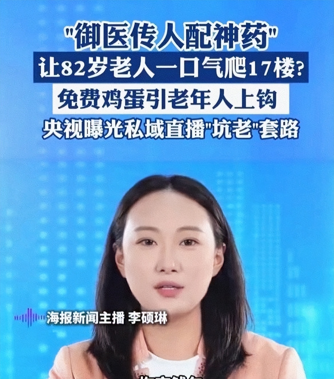 以前是社区里办讲座、送鸡蛋,听完课就推销“进口神药”,现在转到了直播间,主播声泪俱下地喊“干爹干妈”,编造祖传秘方、厂家直销的故事,把普通的东西吹得神乎其神。